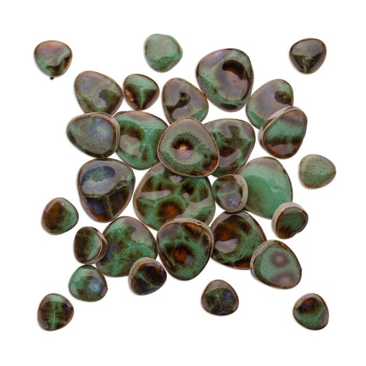 Frogpond Green Brown Marble Effect Glazed Ceramic Pebble Tiles 800g **School Bulk Buy**
