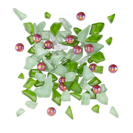 Peppermint Crackle Glitter Green Mosaic Glass Tiles 250g