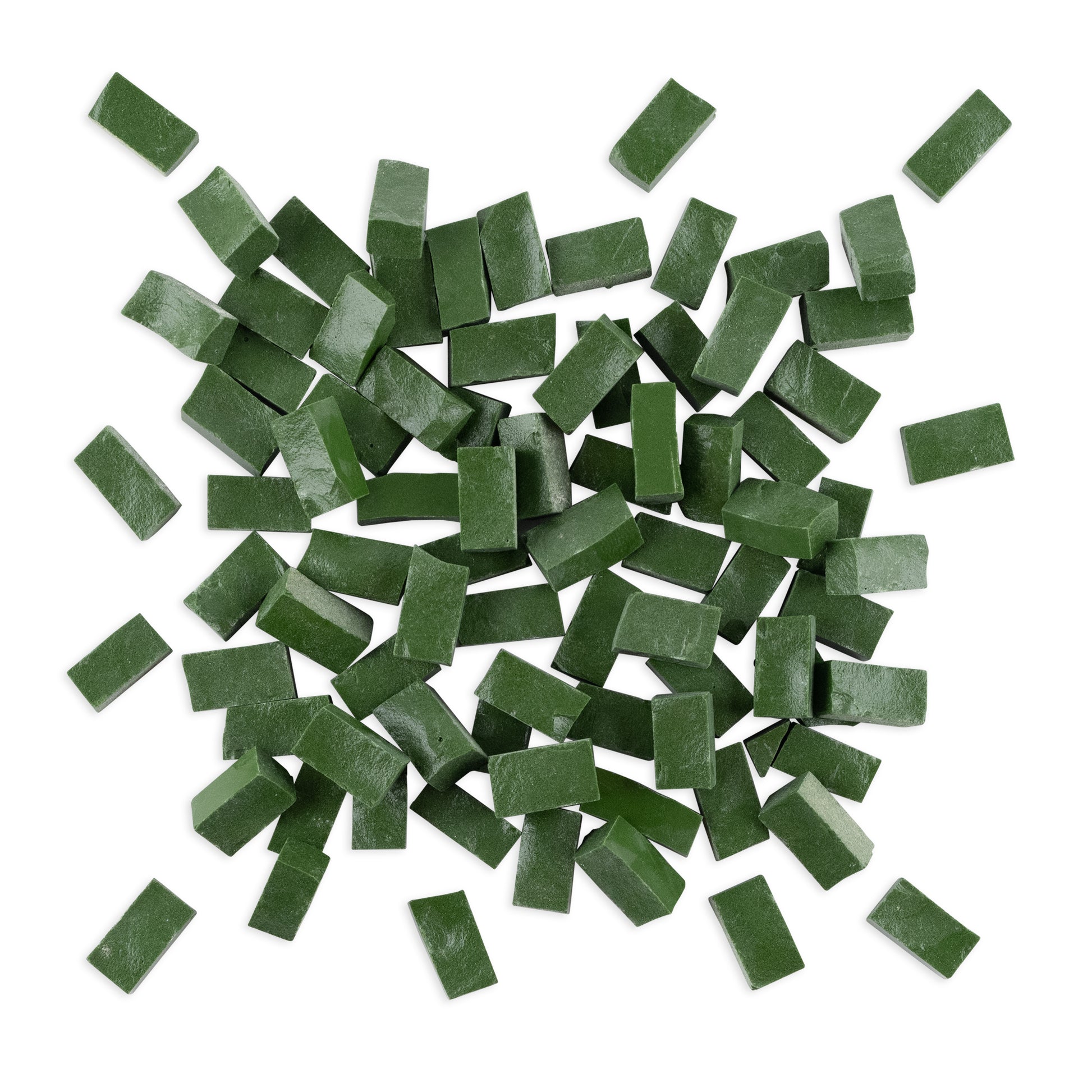 Dark pine green smalti glass in pre-cut bricks.