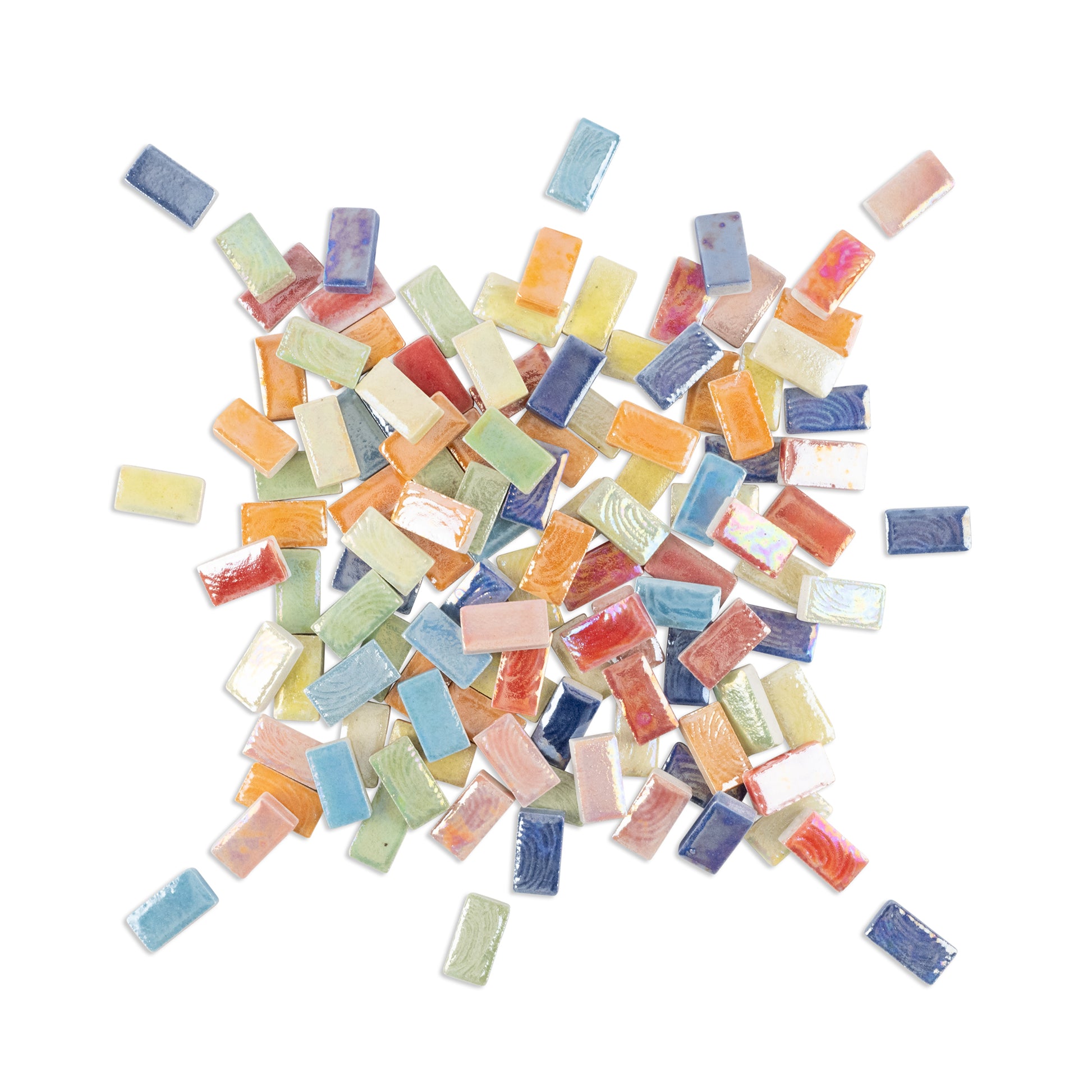 Assorted Coloured Iridised Ceramic Rectangle Tiles 100g Carnevale