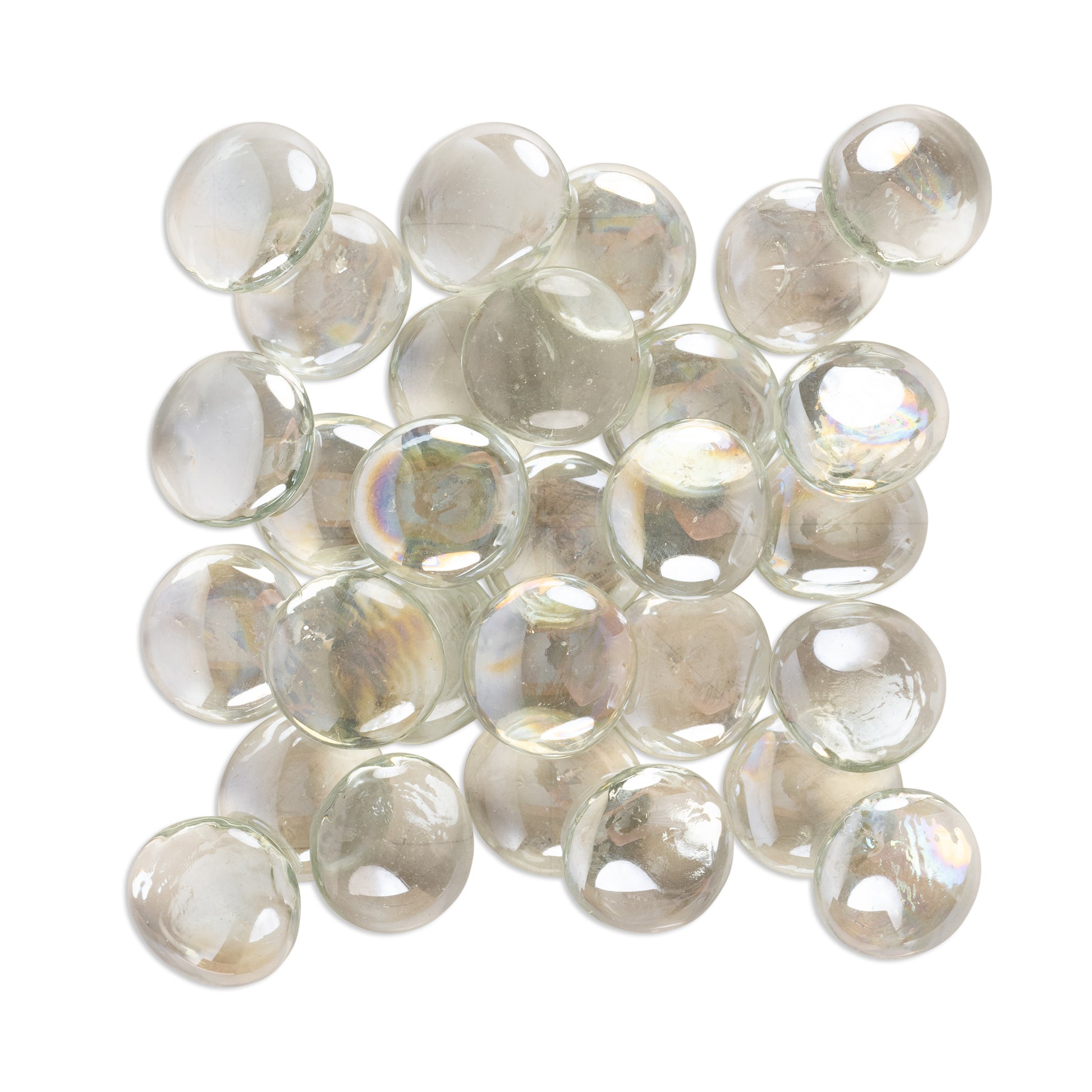 Clear irridised large flat bottomed glass gems