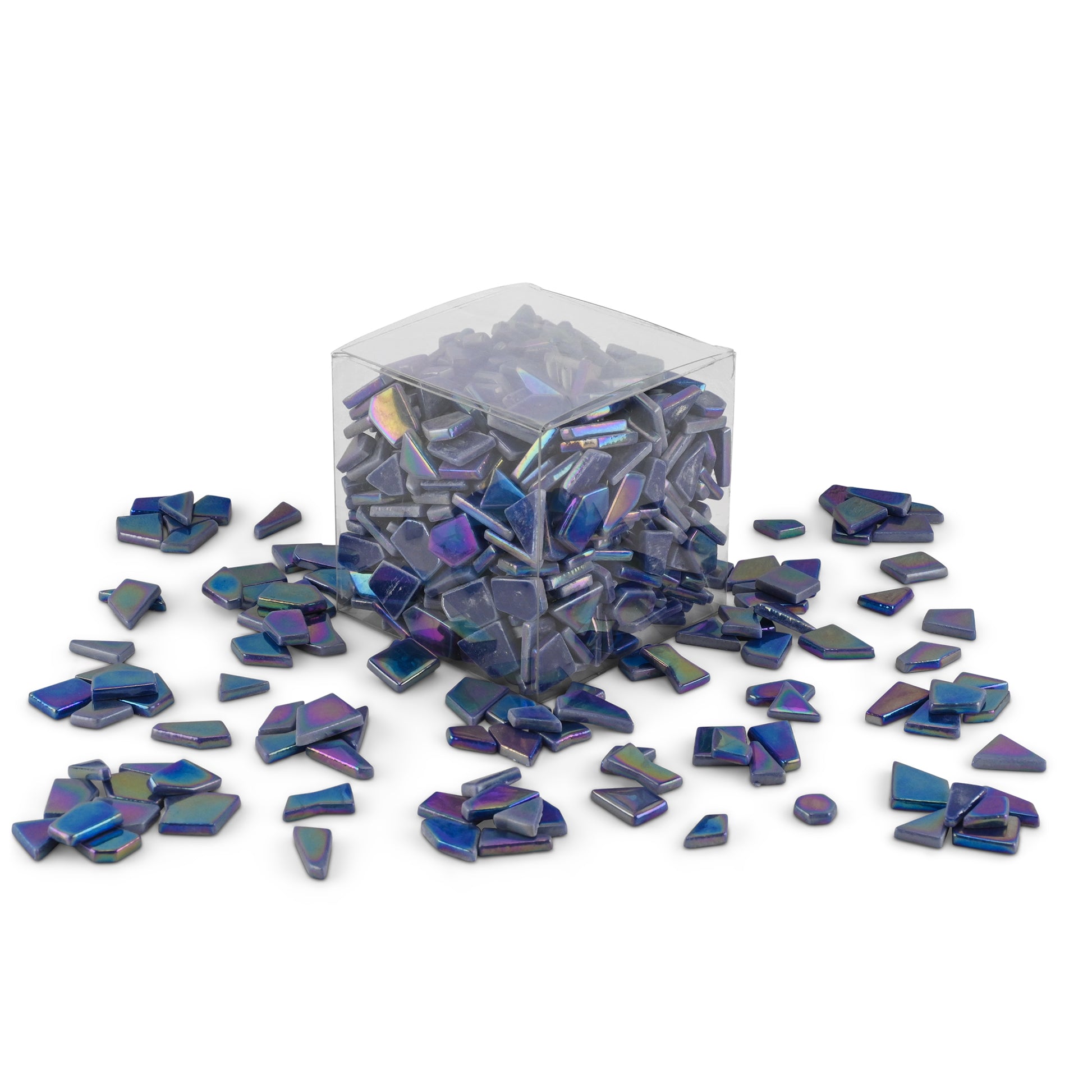 Dark Blue Irregular Shaped Iridised Glass Tiles 1Kg **School Bulk Buy**