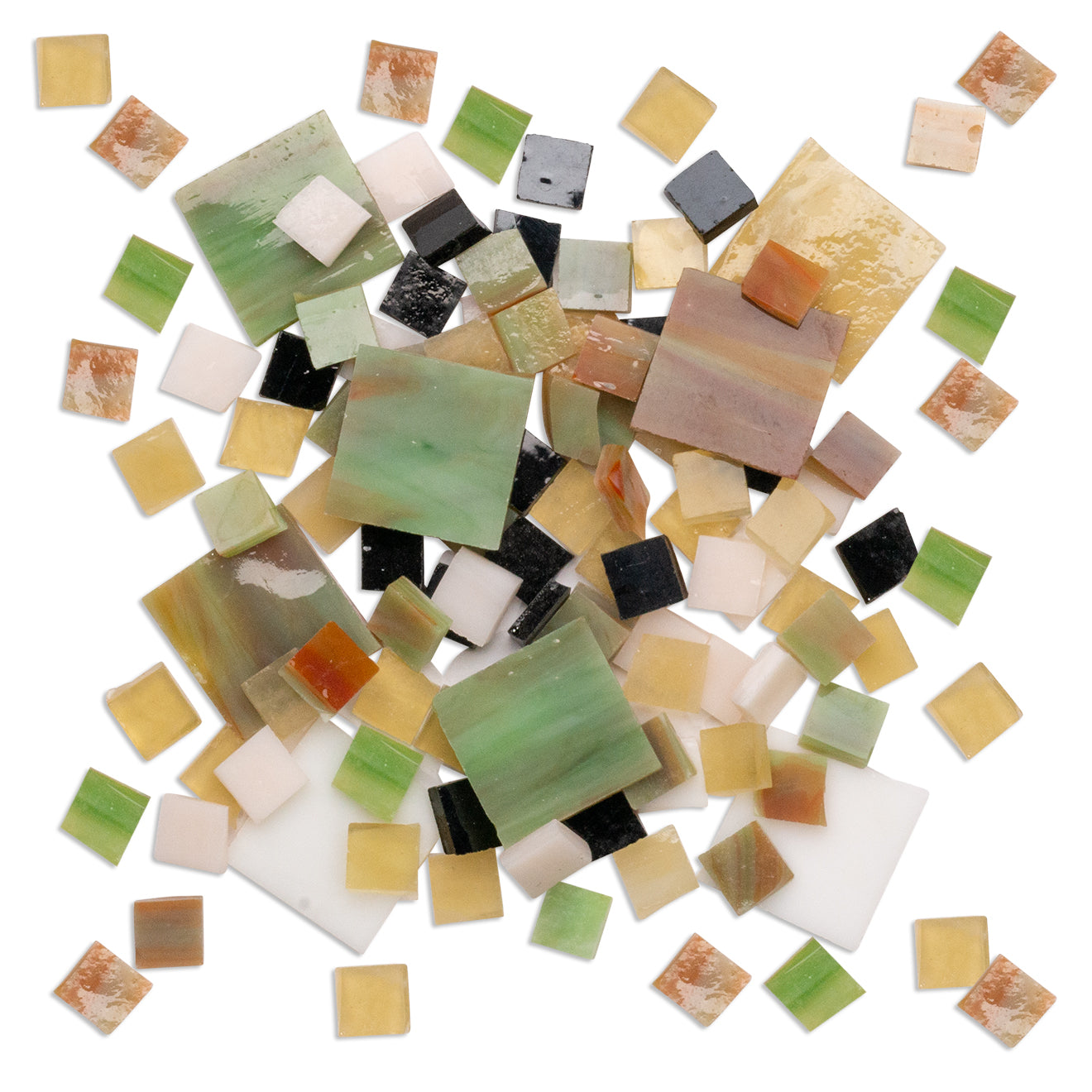 Earth Theme Green Brown Mosaic Glass Tiles 500g