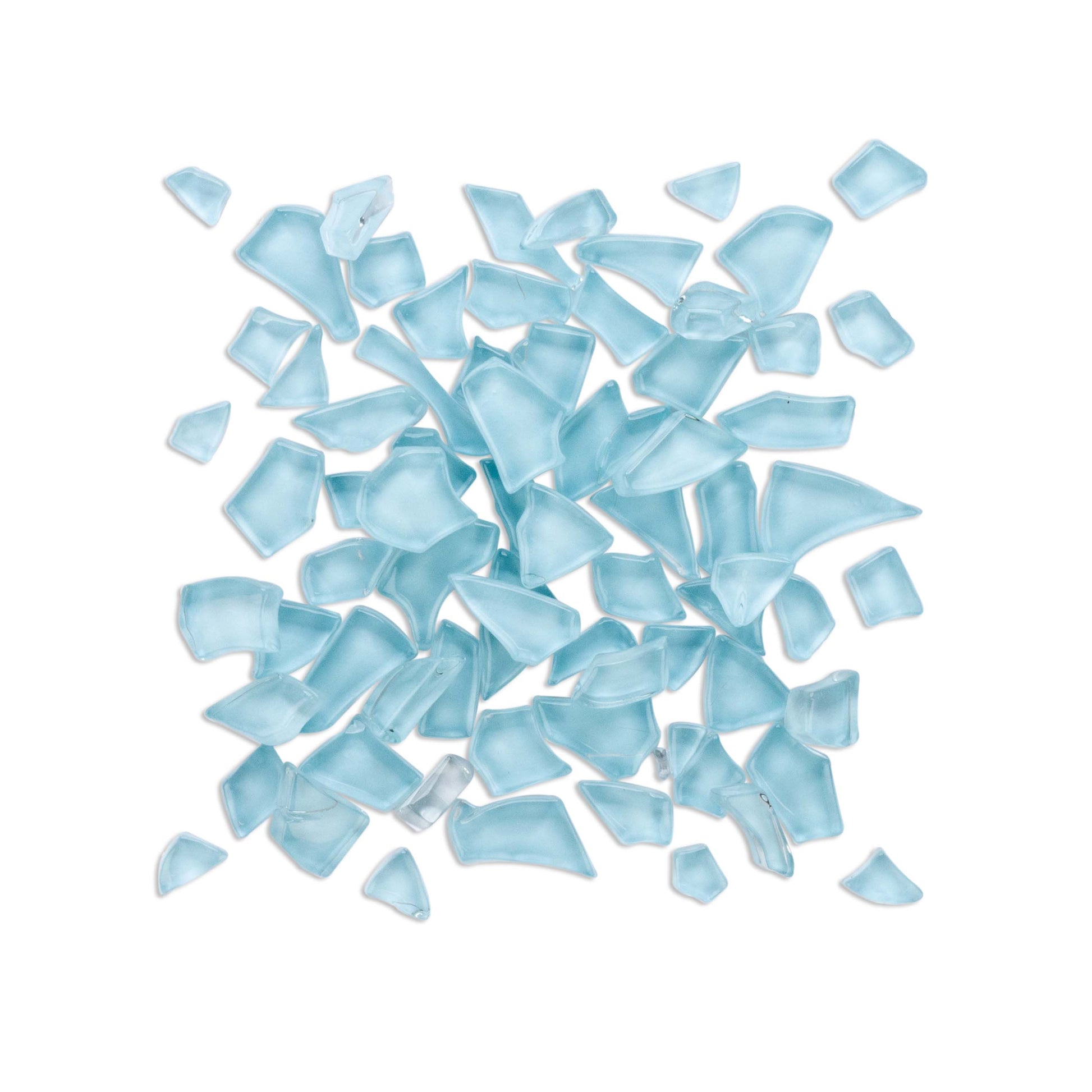 Irregular shaped, pastel eggshell blue colour backed mosaic glass pieces.