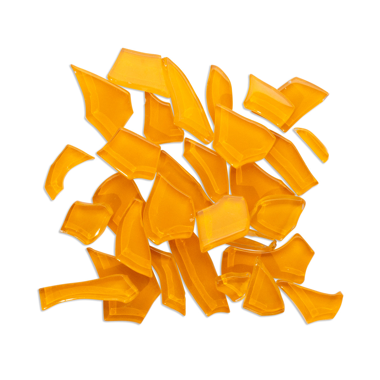 EXTRA LARGE 25-40mm pieces of irregular shaped orange colour backed mosaic glass pieces. Smooth edged with the appearance of smashed glass.