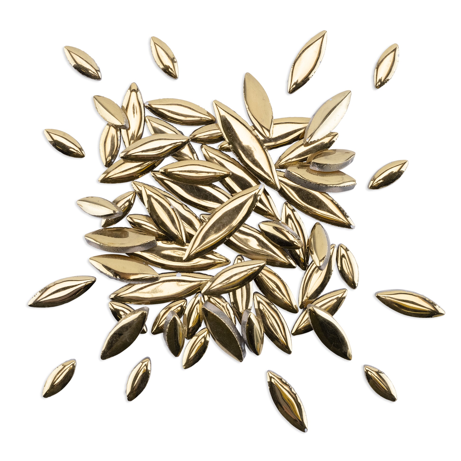 Electroplated leaf/petal shaped ceramic tiles pieces to add interest to your mosaic artwork. Gold metallic finish.
