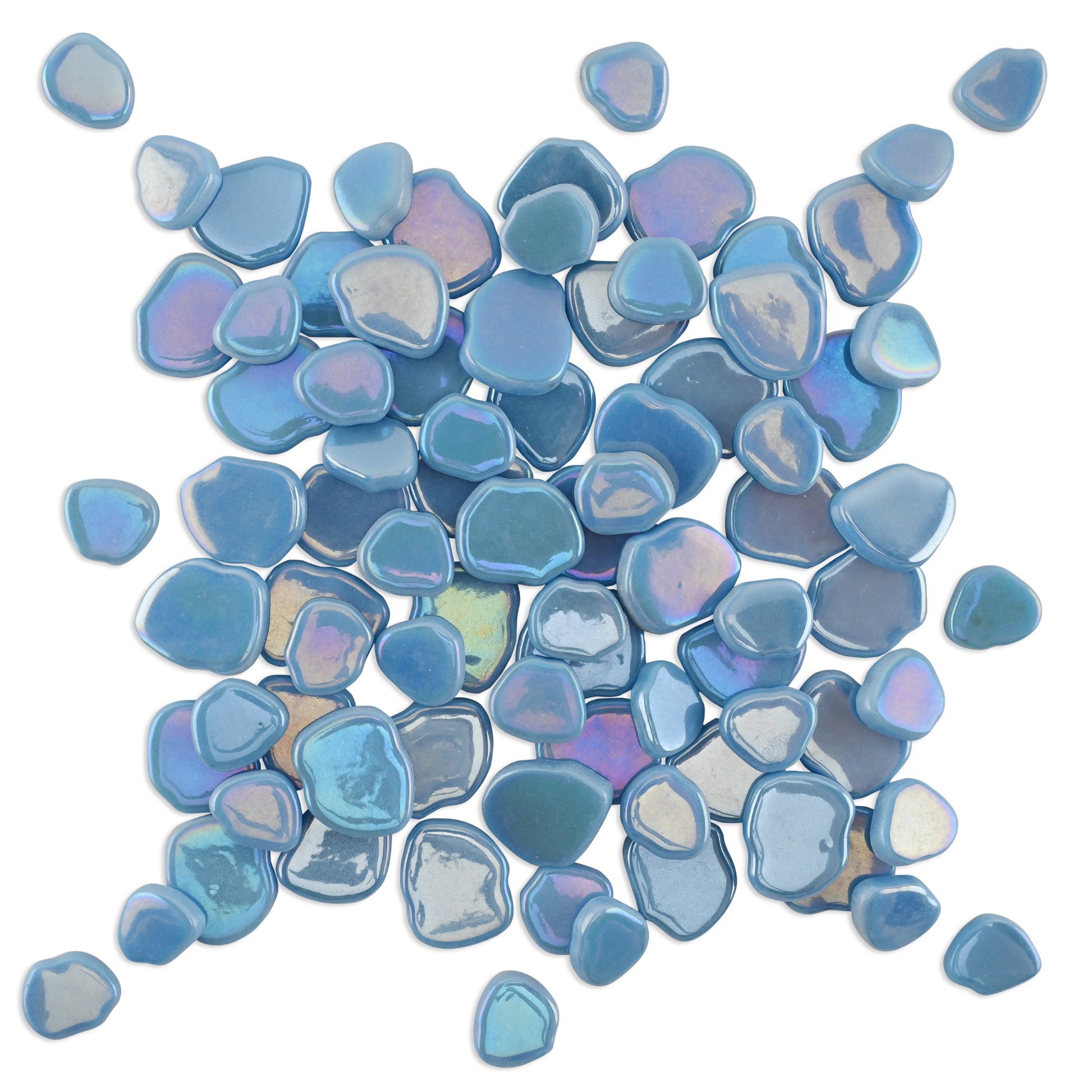 Light Blue Blossom Shaped Iridised Mixed Size Glass Pieces 250g