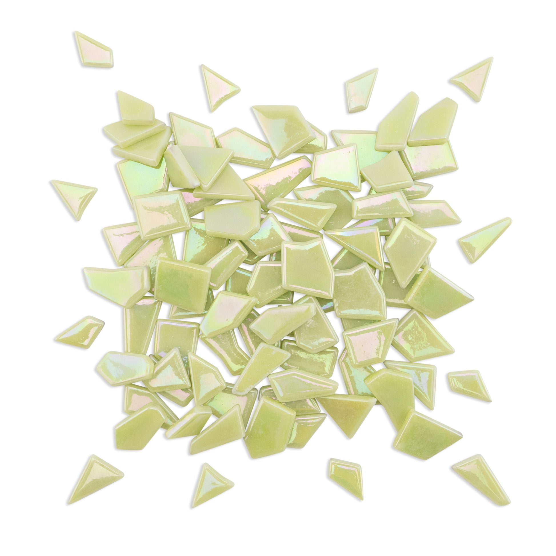 Lime Irregular Shaped Iridised Glass Tiles 1Kg **School Bulk Buy**