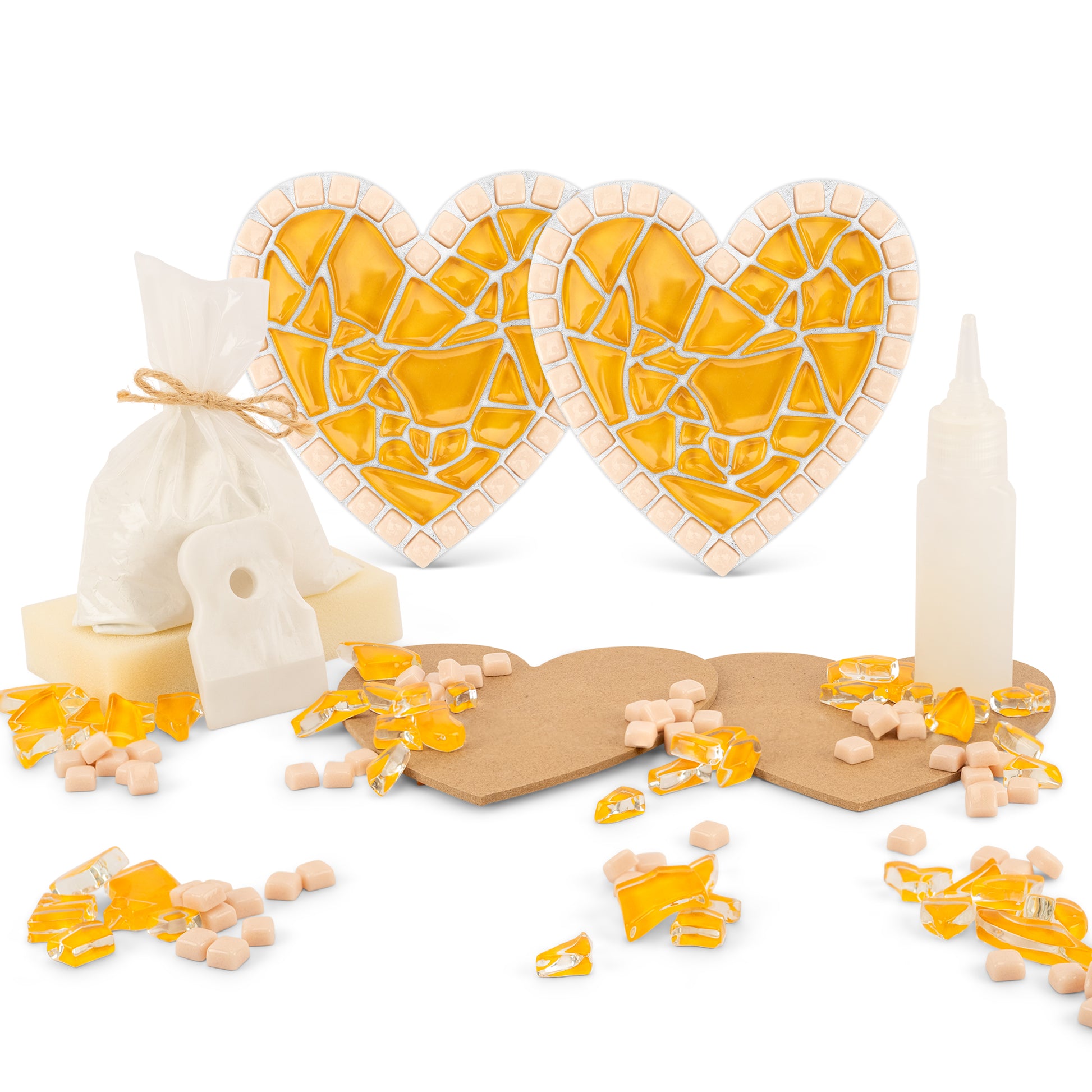 The Made With Love Heart Coaster Kit contains everything you need to create two beautiful and functional mosaic heart coasters for the home.