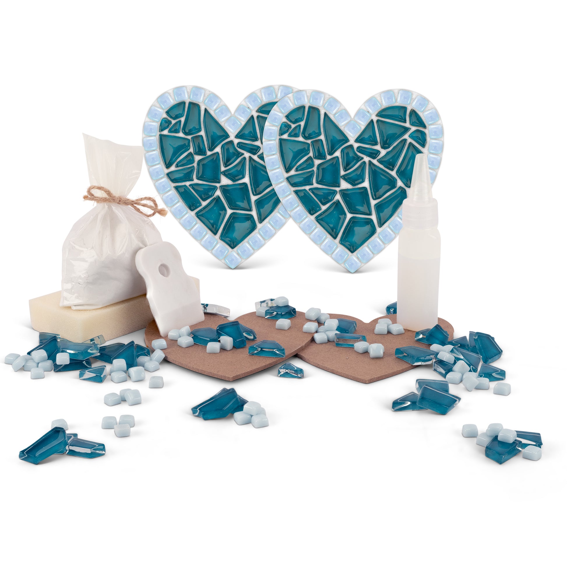 The Made With Love Heart Coaster Kit contains everything you need to create two beautiful and functional mosaic heart coasters for the home.