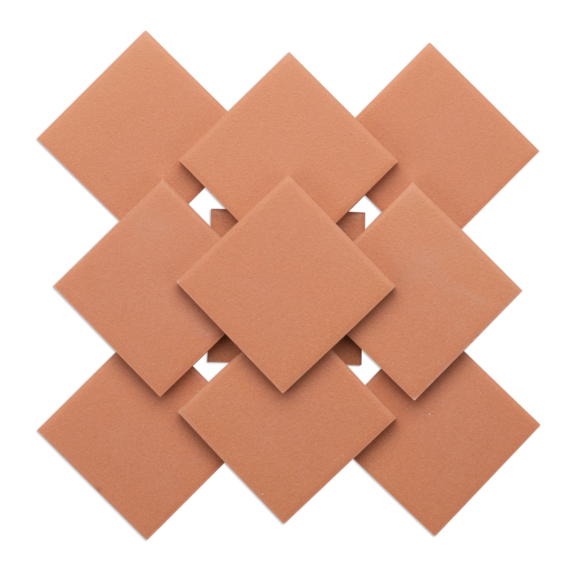 Terracotta orange-brown unglazed porcelain ceramic tiles for mosaic craft.