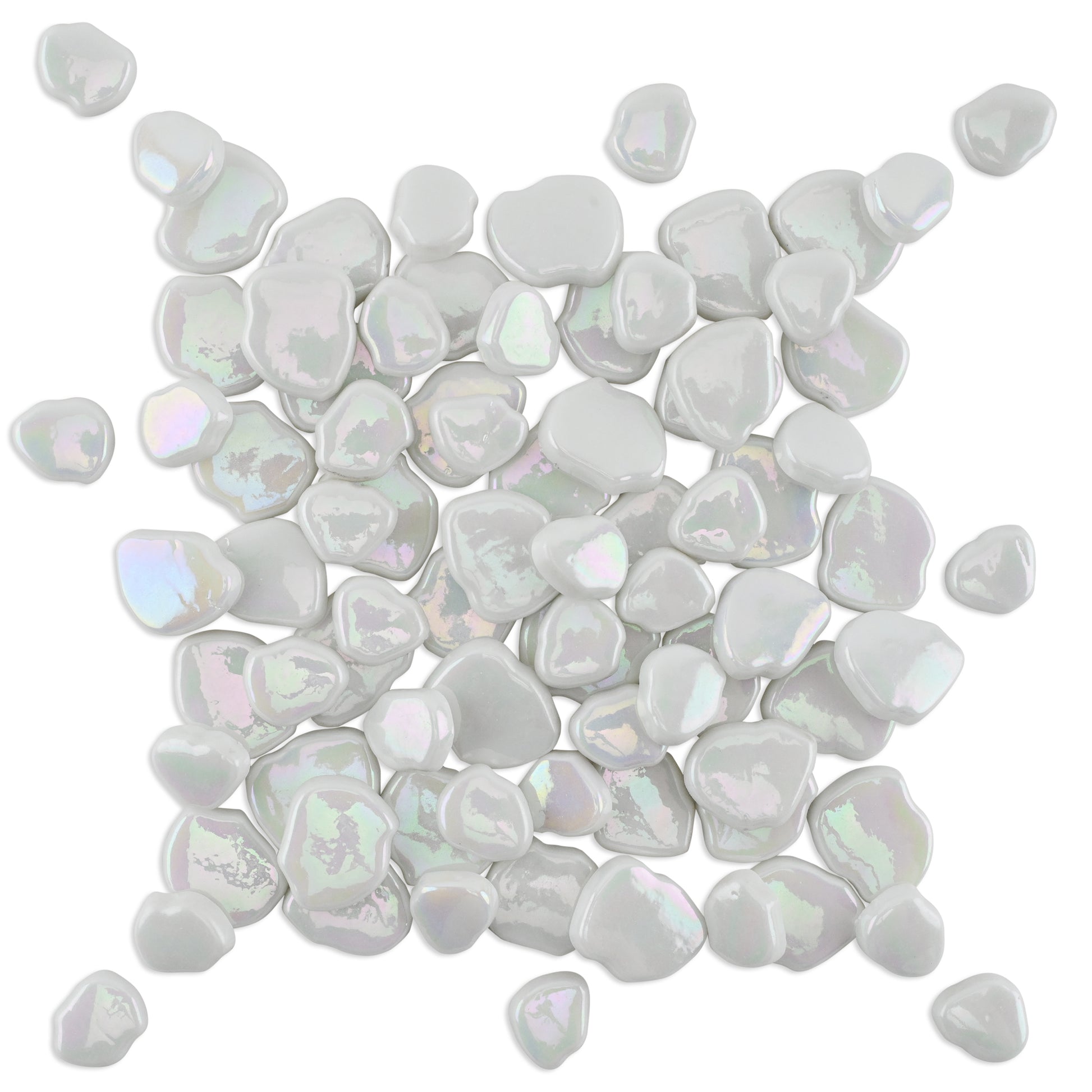 White Blossom Shaped Iridised Mixed Size Glass Pieces 1Kg **School Bulk Buy**