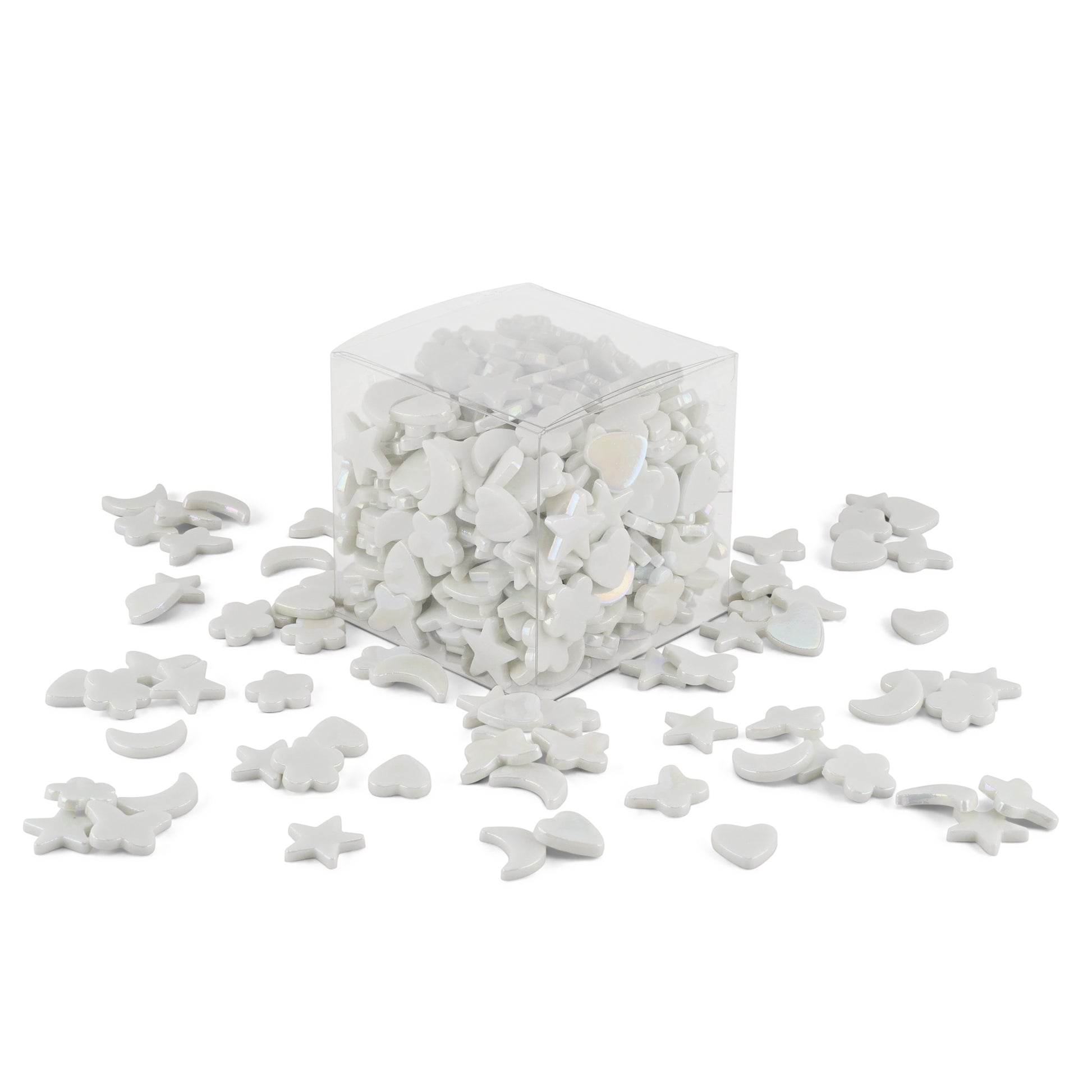 White Cutie Pie Iridised Assorted Glass Shapes 800g **School Bulk Buy**